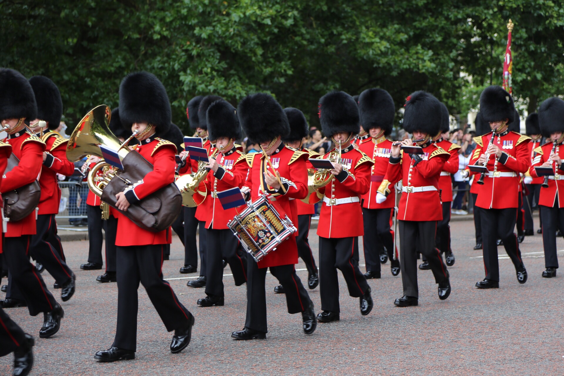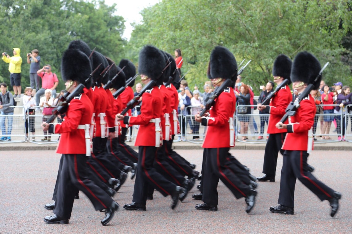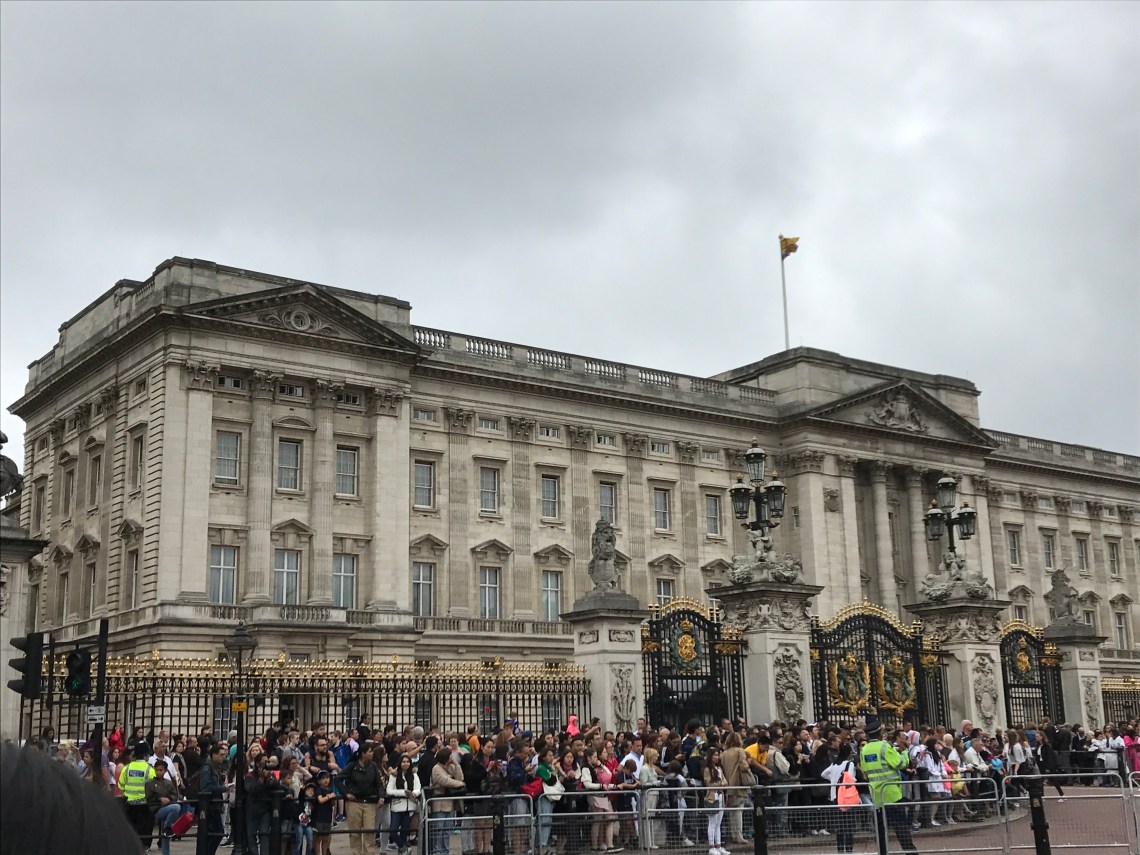 Following St. Paul’s we enjoyed views of The Gorting Hotel (where Kate spent the night before her famous, Royal wedding day…it’s Β£5000/night with a two night minimum for point of reference) and then made it to Buckingham Palace where we awaited the Changing of the Guards. The Queen was home today (the Royal Standard flag was flying).