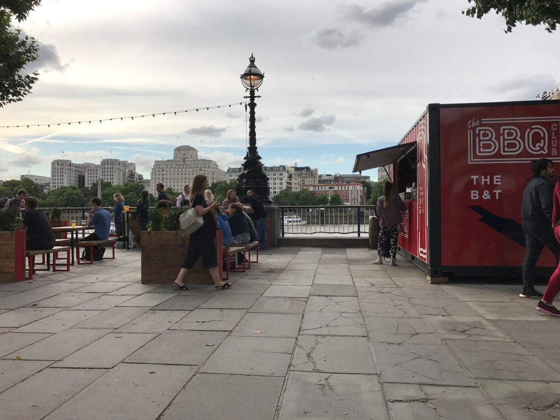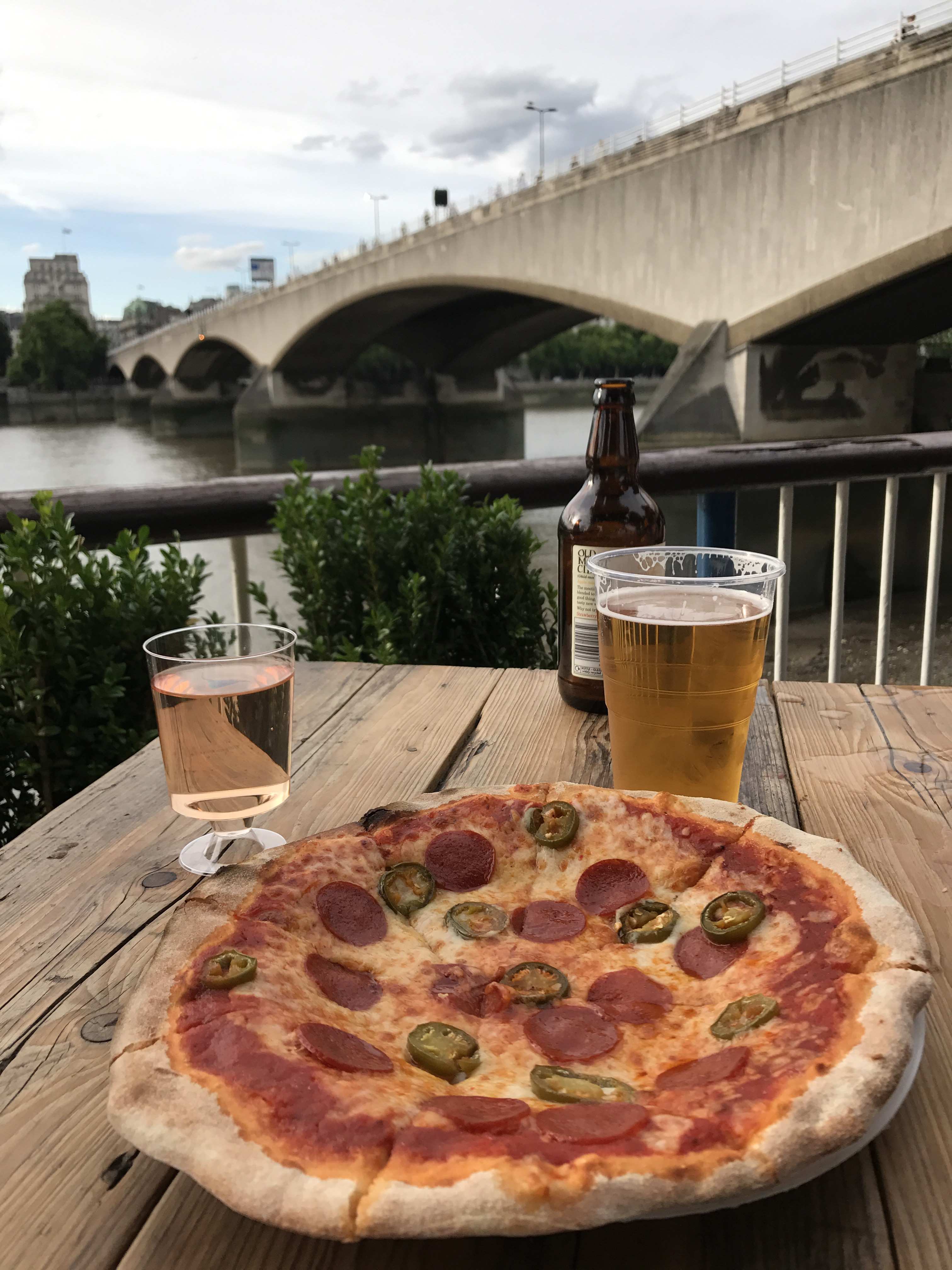 From here we decided to take advantage of the beautiful evening and strolled down the river front checking out various pop up spots and restaurants plus various murals and unique bench displays. We made our way to the National Theatre and spotted more cute venues, including one cleaverly named the Understudy. We decided to snack on a thin crust pizza to hold us over and grabbed a drink from a separate pop up bar. What a great way to unwind (with a view) after a busy day!