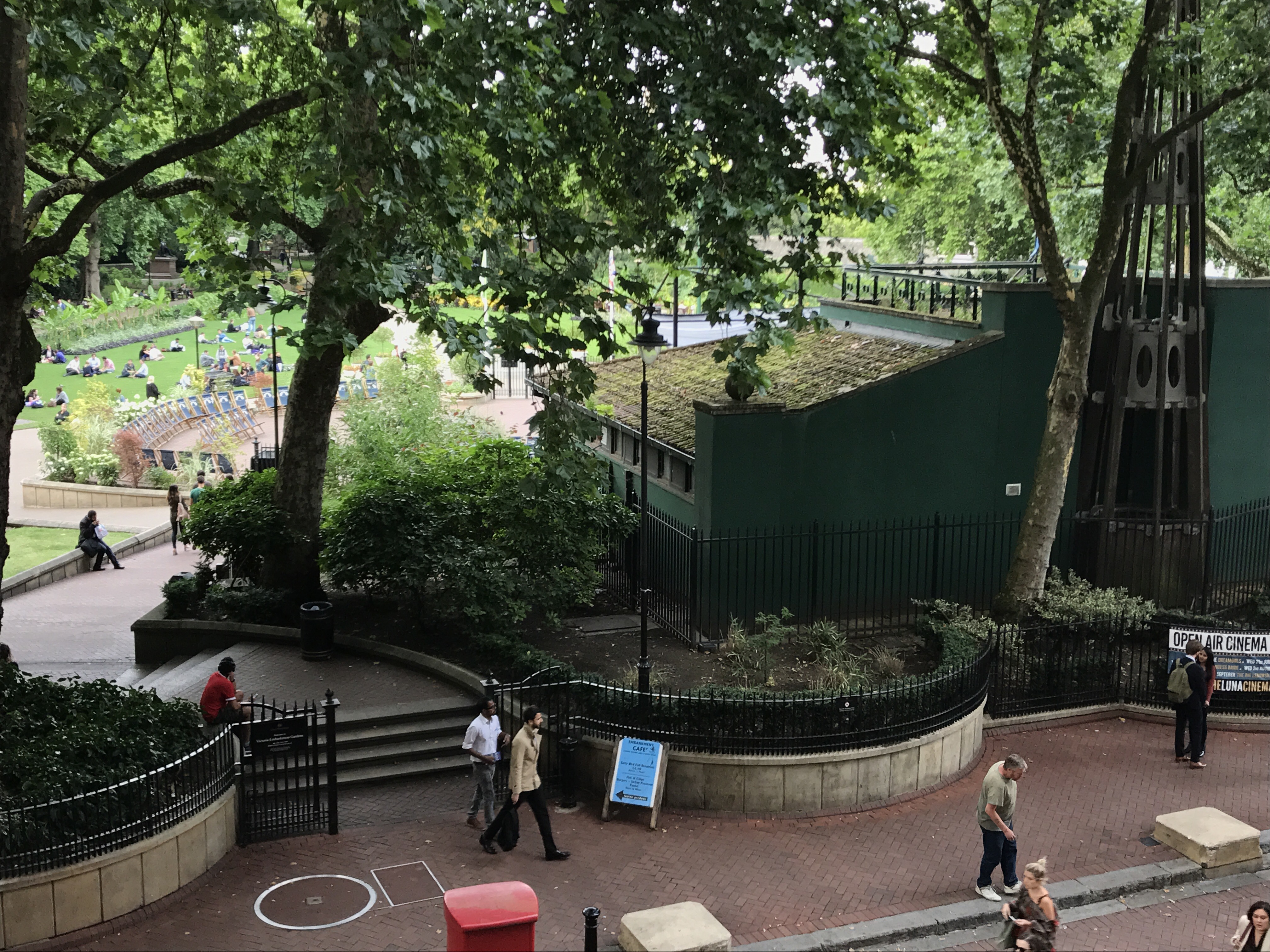 From here, we started to wonder back toward East London to freshen up at our hotel. We made our way past an open air Theatre/park, crowded wine bar and several pubs and shops that seemed to be welcoming the after work crowds.