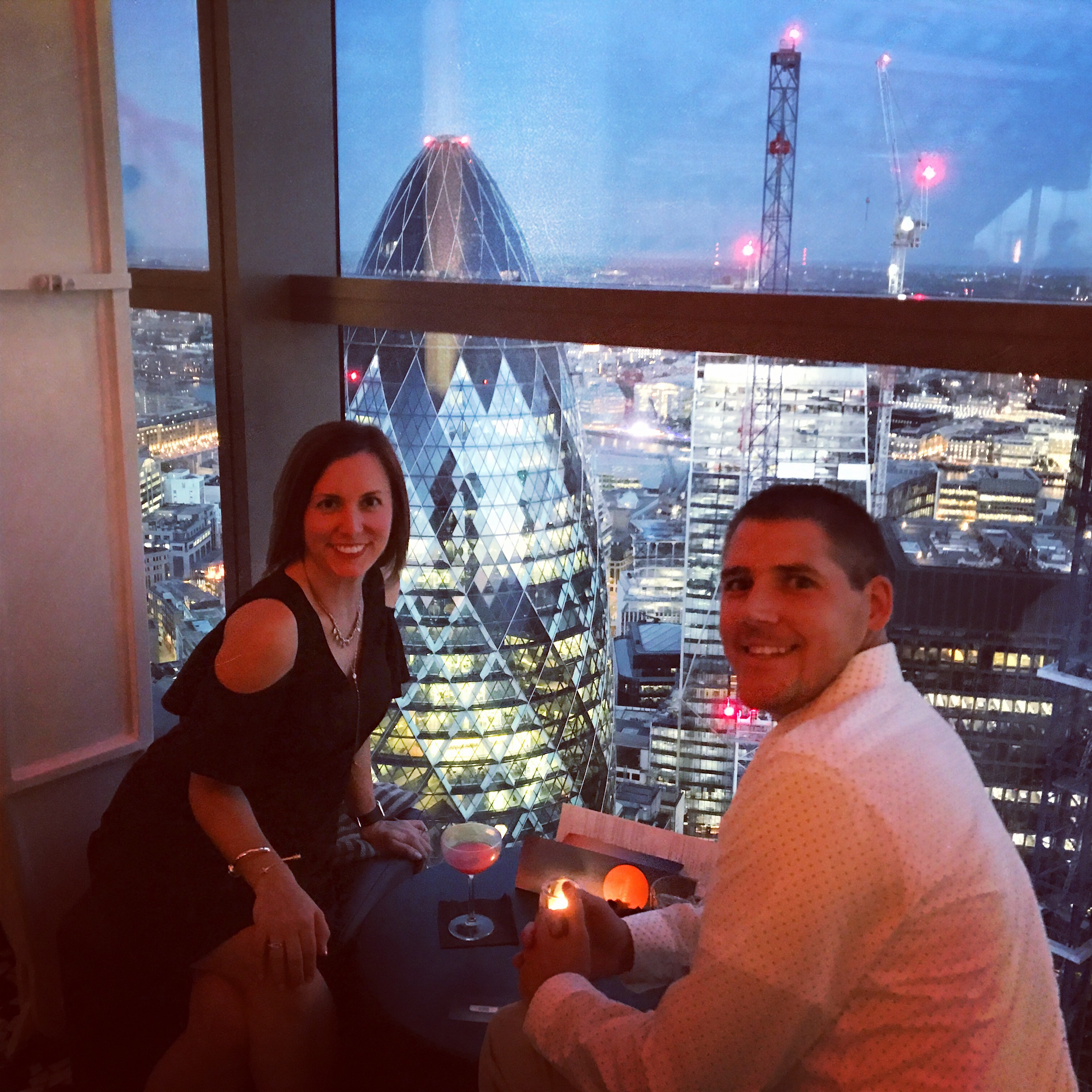 After a quick stop, we headed to the financial district around 8:30PM for SushiSAMBA. I was fortunate to be introduced to this amazing venue that really shows off the city by my dear friend, Kristina. I HAD to get Bryan there, even if for just a drink. As we quickly got comfortable checking out the views from the 40th floor…we happened to catch a table overlooking the Gherkin and decided grabbing some small bites with a drink would be the perfect way to end our night. Bryan had a Monkey Shoudler whiskey based cocktail muddled with salted caramel and maple, and I ordered a vodka based cocktail with strawberry, grapefruit and guava, shaken with rhubarb bitters, lime and sugar (this is pretty much everything I love in one)! Cheers to great drinks, breathtaking views, and the perfect small bites (edamame, Kobe sliders, sushi) to roundout our amazing day!