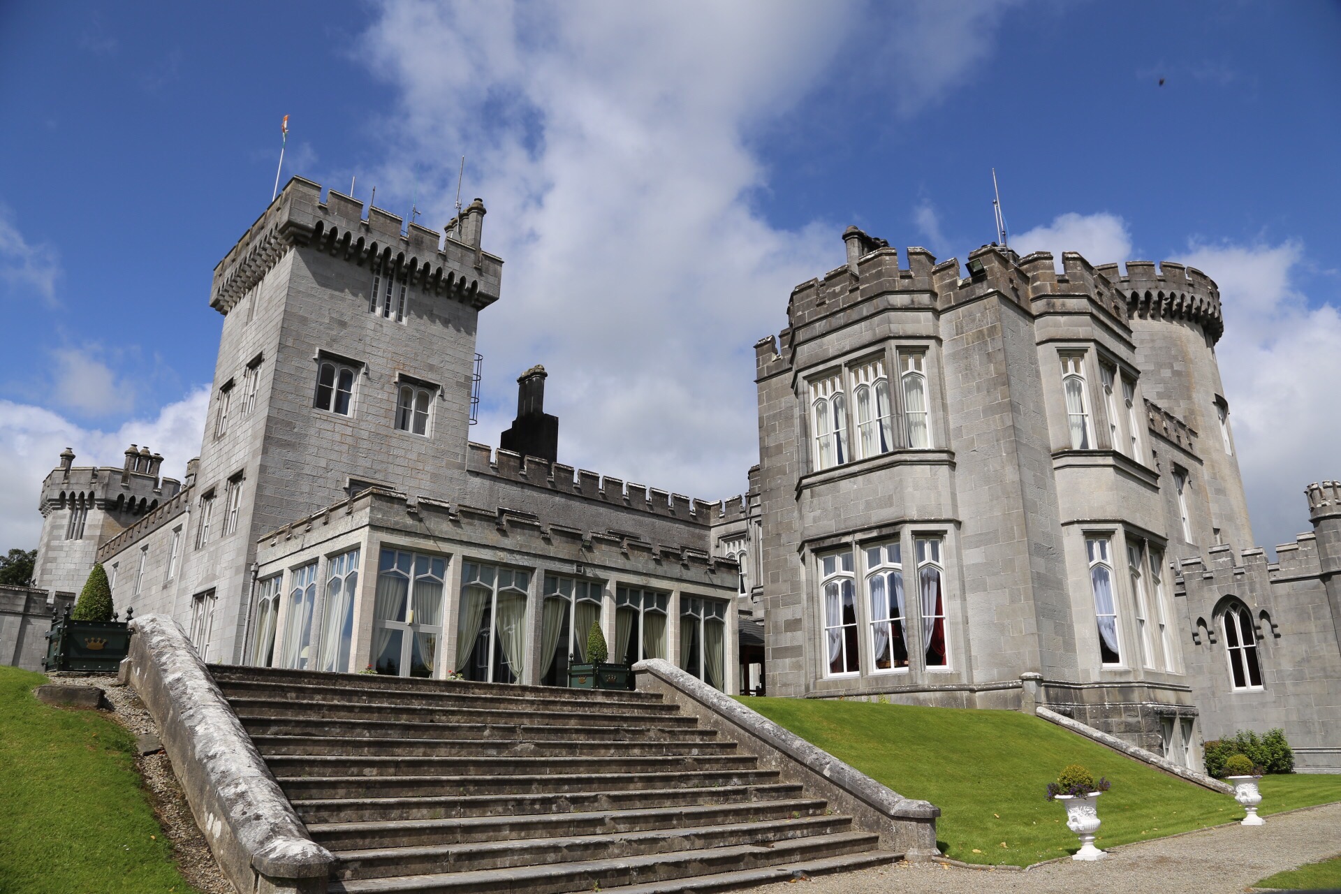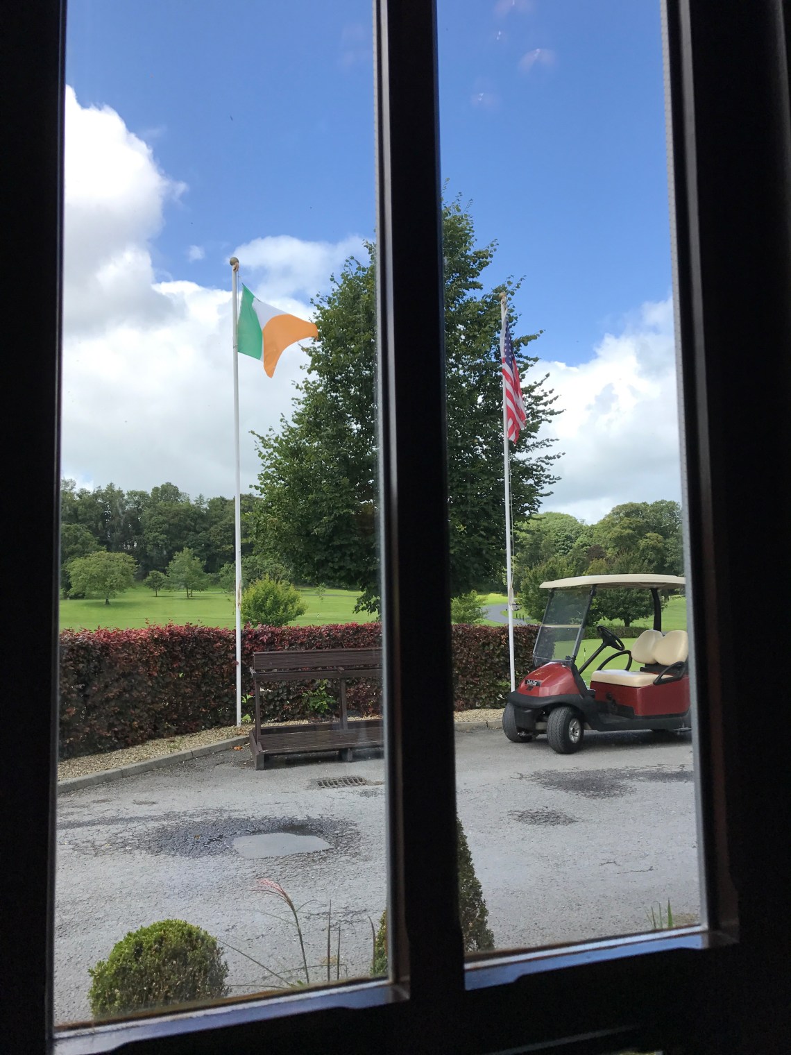 We drove just about 20 minutes further, as we made our way into Shannon, where we decided to stop at Dromoland Castle. This was a destination we gave serious consideration to staying at (thank you sooo much for the recommendation, Tessa & Alex), but the way our overall itinerary worked out we kept passing through in the middle of the day. So, we decided embrace it and explore the grounds and have lunch on site… Definitely need to return and stay/golf here! It’s one of the most famous baronial castles in Ireland, and was the ancestral home of the O’Briens, Barons of Inchiquin, who are one of the few native Gaelic families of royal blood and direct descendants of Brian Boroimhe (Boru) High King of Ireland in the eleventh century. Many US presidents have visited here, and I can absolutely understand why. I was in awe as we drove past the golf course… My eyes felt like a they were pulled by a magneticfield towards the greenery and all I could think about was how amazing it would be to play this course. We spent nearly 3 hours having lunch and exploring the grounds (including a gorgeous private garden that I literally felt like I had entered the “secret garden” upon opening the gate to it), spotted a guest taking a falconery lesson, walked to the Mercury temple (an incredible site… Good work on proposing here, Alex!), and saw carriage rides pass by as we were mesmerized by a pond of lillypads. From here, we knew it was time to grab a bite to eat, so we could get back on the road. We had another fantastic meal at the club house, carmelized onion sausage for Bryan (including golf tees to hold the sausage in the buns) and a tasty ham hock sandwich for me. Our entire experience here was delightful, and I hope to return back to get a round of golf in and stay at this beautiful property.