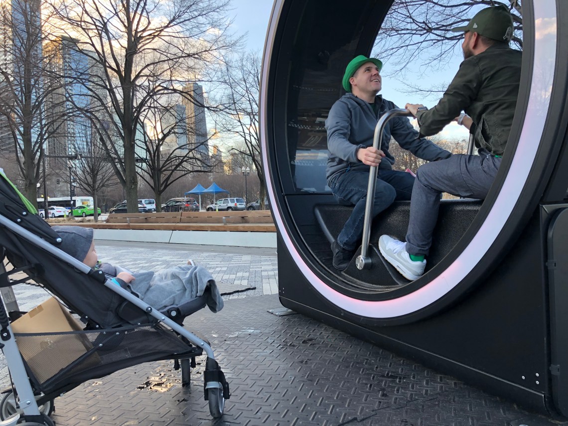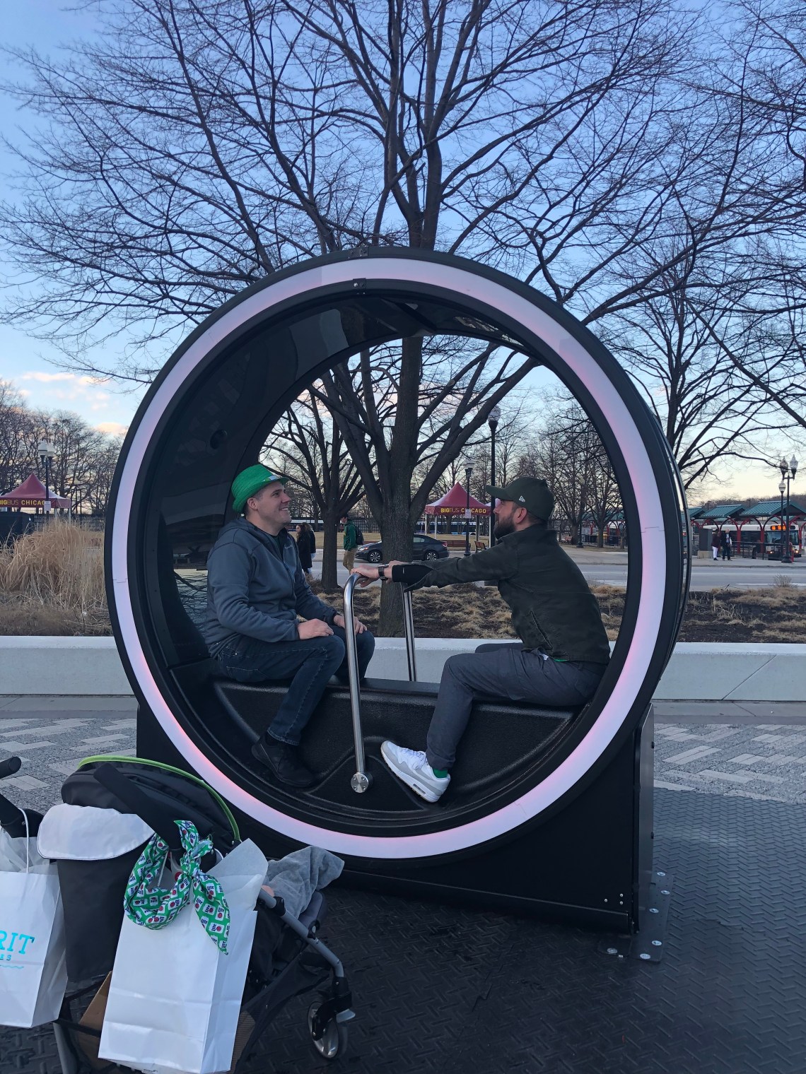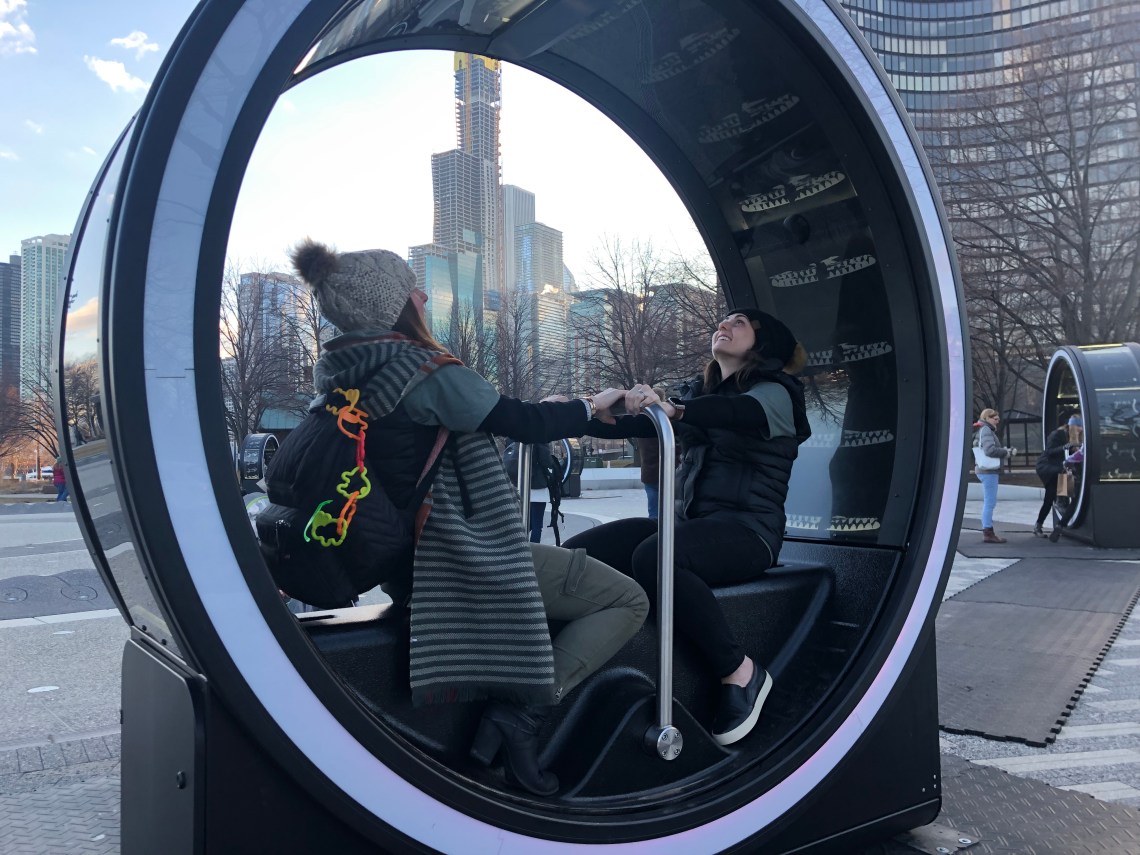 As we made it back to land, we strolled through Navy Pier and gave the latest exhibit out front called LOOP a test drive – almost a mix of a photo view finder, hamster wheel, and row boat!